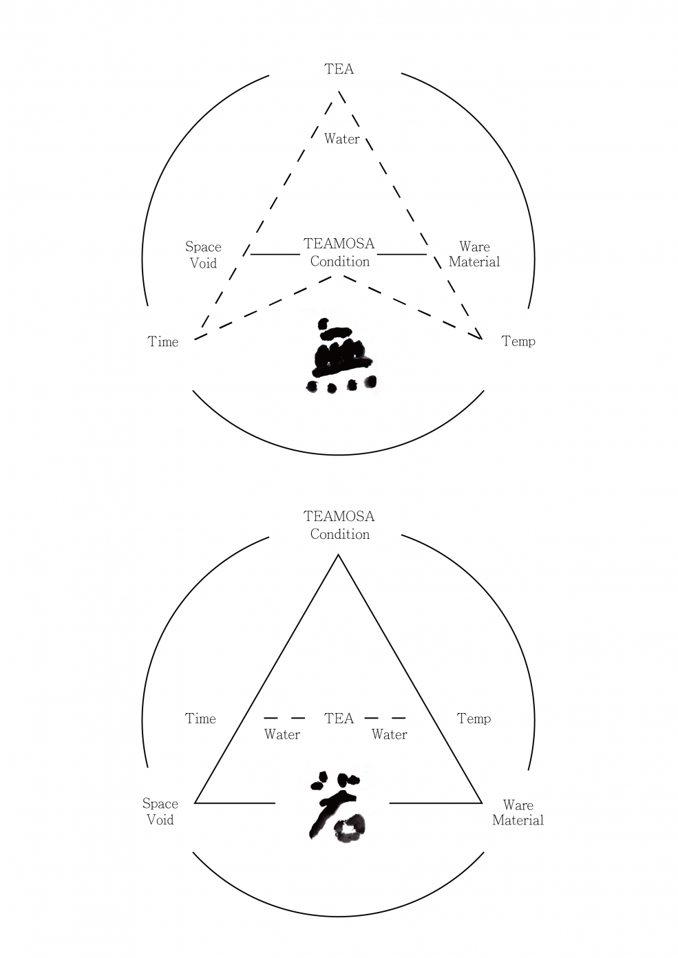 這兩個概念彼此為互補關係,行成三角形,括弧裡的則是以人為出發的同心圓,另一個則是茶為出發的同心圓(註1)。